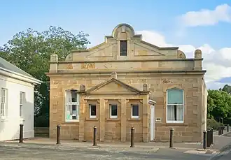 Richmond was initially established as a pioneering district within the Van Diemen's Land penal colony. Richmond later developed as a police district for the surrounding region after Governor George Arthur appointed a number of paid magistrates to oversee penal discipline in 1827.[2] Arthur implemented this measure as a way of increasing penal order, punishing crime and keeping an accurate record of the movements and behaviour of all convicts in attempt to hold the colony up as an orderly colony, enforcing strict convict discipline.[2] Consequently, Richmond grew as a centre of local government with a centralised justice system, holding council and court hearings from the Coal River Valley to Campania and Colebrook.[3] According to historian Peter Macfie, there was a high degree of prejudice among the senior public figures of Richmond toward the convicts, which resulted in a 'caste system' within the community – something that was maintained in the region through most of the nineteenth century.[4] Immigrant settlers mostly occupied the estates within the township, whereas emancipists eventually settled on farms on the fringes of the township.[4]