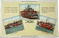 The Richmond–San Rafael Ferry Company (originally Richmond–San Rafael Ferry and Transportation Company) was a ferry service between Castro Point in Richmond in Contra Costa County and San Quentin in Marin County, California across the San Pablo Bay. It ran from 1915 until the 1956 opening of the Richmond–San Rafael Bridge.