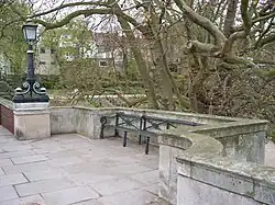 The act specified that the bridge was to be built on the site of the existing ferry "or as much lower down the river as the Commission can settle".[12] Local residents lobbied for it to be built at Water Lane, a short distance downstream from the ferry site. The approach to the river was relatively flat, avoiding the steep slope to the existing ferry pier on the Surrey bank. However, the Dowager Duchess of Newcastle refused to allow the approach road on the Middlesex bank to pass through her land at Twickenham Park,[14] and the commission was forced to build on the site of the ferry, despite a steep 1 in 16 (6.25%) incline.[15]
