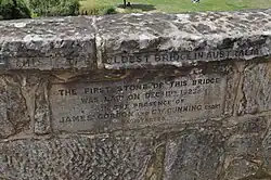 The plaque gives official recognition to those directly involved in the construction of the bridge. From 2004 to 2005, descendants of William Wilson (full name William Hartley Wilson), named on the plaque as Superintendent of Stonemasons for the construction, undertook extensive research into aspects of the bridge's building and subsequent modifications, as well as the natural fauna/flora which existed in the vicinity of the bridge at that time.