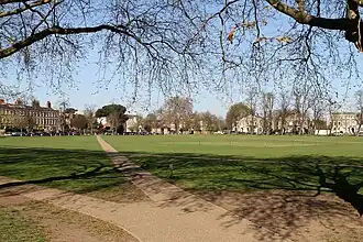 The first time Richmond Cricket Club are known to have played on The Green was on 4 July 1743 when a combined Richmond & Kingston team was defeated by London. The noted Kent player Robert Colchin guested for London and the match is his earliest recorded mention.[10][11][12] Later matches on The Green involved the Richmond club against other parish teams – for example, Chertsey in 1761, 1765 and 1771; Kingston in 1767; and Montpelier in 1799 and 1800.[13]