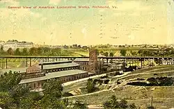 The Richmond Locomotive Works grew out of Tredegar Iron Works to become a nationally known manufacturer of steam locomotive engines and an integral part of the industrial landscape of the city of Richmond.[2] The engines it produced were shipped across America, as well as several countries in Europe, Asia and the South Pacific.[2]