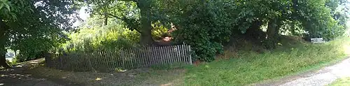 The park played an important role during World War I and was used for cavalry training.[97] On 7 December 1915 English inventor Harry Grindell Matthews demonstrated, in a secret test on Pen Ponds, how selenium cells would work in a remotely controlled prototype weapon for use against German Zeppelins.[98] Reporting on this story several years later, in April 1924, The Daily Chronicle said that the test had been carried out in the presence of Arthur Balfour, Lord Fisher and a staff of experts. Its success led to Matthews receiving a payment of £25,000 from the Government the very next morning. Despite this large sum changing hands, the Admiralty never used the invention.[99] Between 1916 and 1925 the park housed a South African military war hospital, which was built between Bishop's Pond and Conduit Wood.[100][101] The hospital closed in 1921 and was demolished in 1925.[102] Richmond Cemetery, just outside the park, contains a section of war graves commemorating 39 soldiers who died at the hospital; the section is marked by a Cross of Sacrifice and a Grade II listed[103] cenotaph designed by Sir Edwin Lutyens.[104]