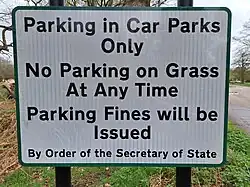 The Friends of Richmond Park (FRP) was founded in 1961 to protect the park. In 1960 the speed limit in the park had been raised from 20 to 30 miles an hour and there were concerns that the roads in the park would be assigned to the main highway system as had recently happened in parts of Hyde Park.[57] In 1969, plans by the then Greater London Council to assign the park's roads to the national highway were revealed by the Friends and subsequently withdrawn.[58] The speed limit was reduced to 20 miles an hour in 2004.[59]