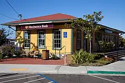 In 1900, the Atchison, Topeka and Santa Fe Railway (Santa Fe) made Ferry Point on Point Richmond the west terminus of its transcontinental mainline, where passengers could board ferries to San Francisco.[1] A station was soon built at the west end of Macdonald Avenue next to the Santa Fe rail yard. It was a two-story wooden Craftsman style structure with a one-story portico on the southwest side and a one-story freight house on the northeast side. A small reading room for employees (later used as a trainmaster's office) was located nearby.[2][3] A station was also located at Richmond Avenue in the Point Richmond neighborhood from 1903 to 1918.[4]