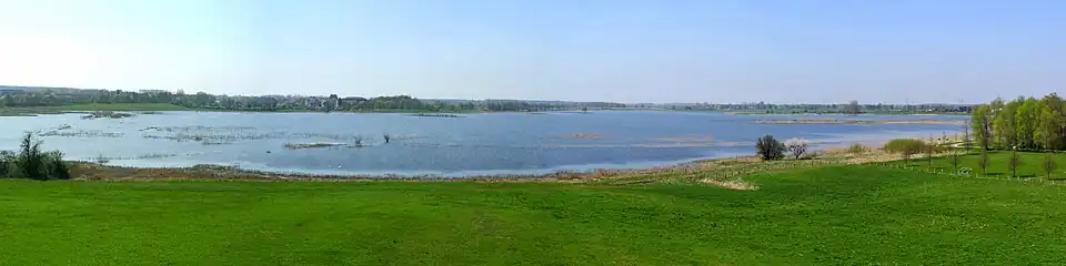 The lake was first mentioned in the 13th century, although it is not absolutely clear whether it had a natural origin or was laid out by monks from the nearby Neuenkamp Abbey in present-day Franzburg. The area was drained in 1936 by the Reichsarbeitsdienst.[2] Before it was reflooded in 2006 there were wet meadows here that were crossed by drainage ditches that emptied into the Schleusengraben. The local district office of Franzburg-Richtenberg agreed tom implement an Agenda 21 plan for redesigning the landscape around the Franzburg-Richtenberger See.