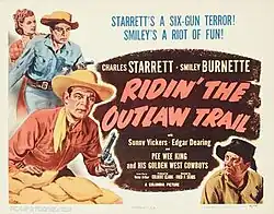 Ridin' the Outlaw Trail is a 1951 American Western film directed by Fred F. Sears and starring Charles Starrett, Sunny Vickers and Edgar Dearing.[1] The film's sets were designed by the art director Charles Clague. Shot at the Iverson Ranch, this was the fifty-third of 65 films in the Durango Kid series.[2]