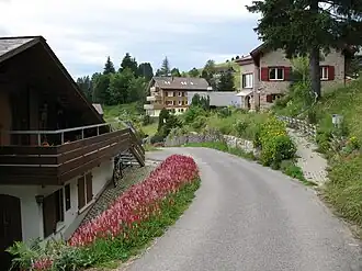 Rigi Kaltbad was also the terminus of the Rigi–Scheidegg railway, a contour-following panoramic rail line that connected it to the Scheidegg summit between 1875 and 1931. Today the line's trackbed, which is 6.7 kilometres (4 mi) in length and includes a tunnel and several bridges, is a rail trail that serves in summer as a panoramic footpath, and in winter for cross country skiing.[1][2]