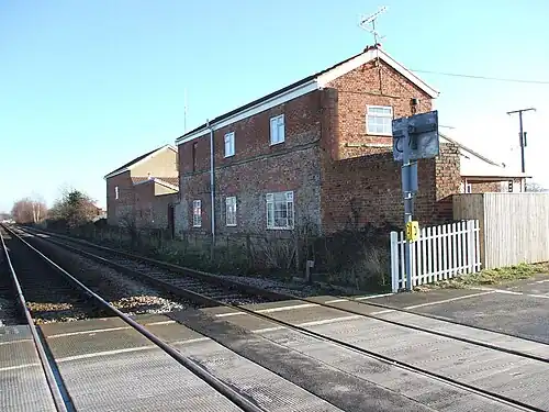 The station had three platforms and an east-facing coal depot. Two of the platforms were on the main through line, and the third was a bay platform for services on the Whitby line.[6] The goods shed was located on the other side of the level crossing to the station, with a west-facing connection (towards Malton).[7] Originally, before the Forge Valley and the direct line to Whitby were opened from Scarborough, passengers travelling between Whitby and Scarborough had to change at Rillington. This prompted the railway company to build a curve east of the station connecting the Whitby and Scarborough lines in 1865. However, the daily average of passengers using the avoiding line was low (about 31 per day), so after some time, it was formally disused (by 1870), and the track lifted in 1880.[8][9] Bradshaw labelled the station as Rillington Junction until the 1890 timetable, when it became simply Rillington.[10]