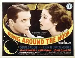 Ring Around the Moon is a 1936 American drama film directed by Charles Lamont and starring Donald Cook, Erin O'Brien-Moore and Ann Doran.[1] It was produced and distributed by Chesterfield Pictures shortly before the company was taken over by Republic Pictures.