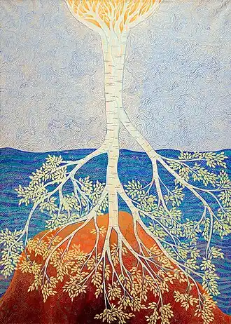 According to the Anastasians, the theme of the "singing trees" or "ringing trees", that is to say trees emitting vibrations transmitting information, is part of an ancient Eurasian and worldwide wisdom,[23] a way of life consisting in the cultivation of Rod (Род, literally "Generator")—God conceived as continuous "Generation", "Nature"—which has been preserved over the centuries in its purest form by Russians and volkhvs (shamans) who escaped the Christianisation of Kievan Rus' fleeing to Siberia—a Christianisation which was decided by the ruling elites in order to disrupt the relational ties within society and of human society with nature, with ancestors and gods of the environment as the direct link to the supreme God, justifying the confiscation of all land and the enslavement, and exploitation through taxation and trade, of the population.[24]