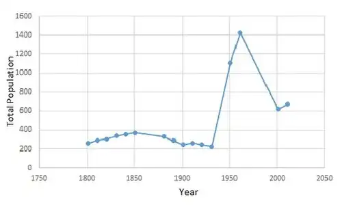 According to the 2011 Census there were 334 males and 336 females living in the parish.[6] The population dramatically increased from just over 200 people to 1400, between 1941 and 1961. But then the population in the parish declined to 600 people by 2001.