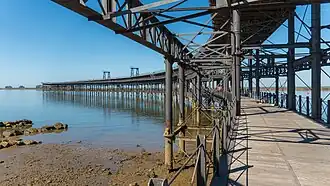 The Rio Tinto Pier (Spanish: Muelle de Rio Tinto) was a commercial pier formerly used for the trade of material from the mines of the Rio Tinto Company in the province of Huelva, Spain. It is situated on the River Odiel in the city of Huelva. An estimated 150 million tons of ore were shipped from the pier over its life. Closed in 1975, it is now a popular tourist attraction and fishing spot. The pier is 1165 meters long, although part of that is built on reclaimed marshland.[1]