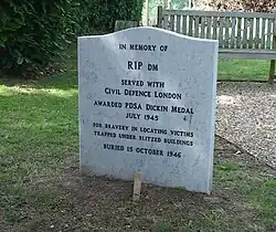 When he died in 1946, Rip became the first of a number of Dickin Medal winners to be buried in the PDSA Cemetery in Ilford, Essex. Twelve recipients of the medal are now buried in the PDSA Cemetery.[3]