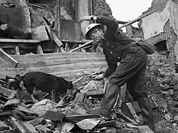 Rip was not trained for search and rescue work, but took to it instinctively.[3] In twelve months between 1940 and 1941, he found over a hundred victims of the air raids in London. His success has been held partially responsible for prompting the authorities to train search and rescue dogs towards the end of World War II.[4]