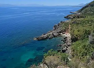 The Riserva Naturale Orientata dello Zingaro was the first natural reserve set up in Sicily in May 1981,[1] located almost completely in the municipal territory of San Vito Lo Capo. It stretches along some seven kilometers of unspoilt coastline of the Gulf of Castellammare and its mountain chain, the setting of steep cliffs and little bays.
