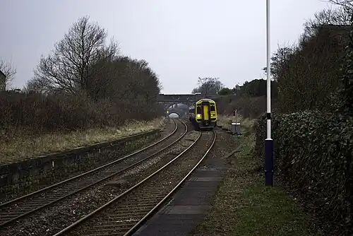 ![]() A Northern Class 158 Express Sprinter unit passes through Rishton on a service from Blackpool North to York on 10 February 2012 | |||||