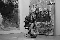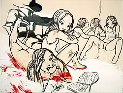 In 2012, Ackermann was the subject of a mid-career retrospective at Museum of Contemporary Art, North Miami, curated by Bonnie Clearwater.[11] The exhibition featured paintings, drawings, and collages from 1993 to 2012.[11] In 2014, the Sammlung Friedrichshof in Austria held an exhibition titled, "Meditation on Violence” by Ackermann, which focused on a series of ‘chalkboard paintings’ which were the result of experimenting with pushing the boundaries of painting.[12][13] A survey of the artist's ‘chalkboard paintings’ was held in 2016 at Malmö Konsthall in Sweden titled, “The Aesthetic of Disappearance”.[14] An additional survey of Ackermann's works in chalk titled, “Movements as Monuments” was held in 2018 at La Triennale di Milano. In 2019, Ackermann began to work on her Mama series, which she has continued through today.[15] A series of “Mama” paintings will be shown alongside her earliest drawings and paintings created from 1993 to 1996, in an exhibition titled "HIDDEN" at MASI Lugano in March 2023.[16]