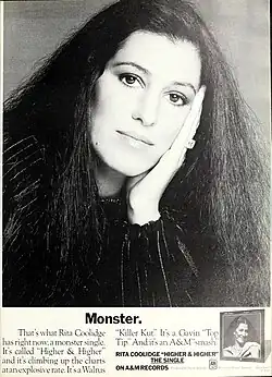 After singing around Memphis (including a stint singing jingles), Coolidge was discovered by Delaney & Bonnie, who worked with her in Los Angeles.[7] There, she became a backing singer[8] for artists including Leon Russell, Joe Cocker, Harry Chapin, Bob Dylan, Jimi Hendrix, Eric Clapton, Dave Mason, Graham Nash, and Stephen Stills.[9] She was featured in Joe Cocker's Mad Dogs and Englishmen tour and album, singing Russell's and Bonnie Bramlett's song "Superstar". Coolidge did not receive songwriting credits for "Superstar" which later became a hit for The Carpenters.[10]