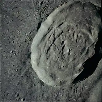 Ritter is a lunar impact crater located near the southwestern edge of Mare Tranquillitatis. Its diameter is 29.5 km. It was named after German geographer Carl Ritter and German astrophysicist August Ritter.[1]