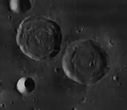 ![]() The crater pair Sabine (center right) and Ritter (right), from Apollo 11 | |