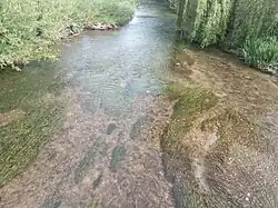 The Allen had the strongest population of white clawed crayfish in Dorset, and measures such as tree planting and slowing the flow of the river were implemented to help the species.[10] However, an outbreak of Crayfish plague was discovered on the river in 2014, with at least 100 of the native species found dead in the river.[11] The river also has an abundance of macrophytes including the two most abundant taxa: common water-crowfoot (Ranunculus aquatilis) and bur-reeds (Sparganium).[8] As well as an abundance of brown trout the river is home to minnow, dace, grayling, salmon, perch, roach, pike, bullhead and brook lamprey and the critically endangered European eel.[12]