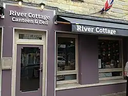 In 2007 the River Cottage team opened the River Cottage local produce store & canteen,[24] a local produce shop and informal restaurant in Trinity Square, Axminster, in a building that formerly housed the town's ballroom.[25] In September 2010 a deli counter was introduced and this venue was renamed the River Cottage Canteen & Deli.[26]