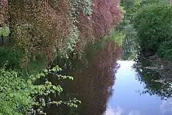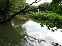 The River Eye is a slender, slow-flowing river in north-eastern Leicestershire, England. The river is known to flood periodically; especially within the town Melton Mowbray.[1] Fine sediments from agricultural fields, the biggest known cause for the floods, have been recognized as a major source to the channel's supply. The river meanders throughout north-east Leicestershire where is it primarily flanked by farmland, and only crosses a handful of villages/towns. The primary wooded area it crosses is the fox covert. The farming in the district is largely made up of pasturing sheep and cows. Stilton and Red Leicester cheeses originally came from the villages and dairy farms in the Eye basin.
