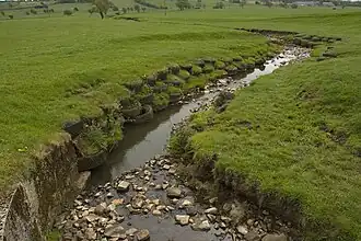 In geological history, the lower reaches of the Loud carried the waters of the River Hodder westward from Doeford Bridge to the Derby Arms north of Longridge (reversing the modern-day eastward flow), continuing south-westward through Halfpenny Lane on the west side of Longridge to join either Blundell Brook past Broughton church and Woodplumpton to join the River Wyre, or else Savick Brook through Fulwood to join the River Ribble.[1]