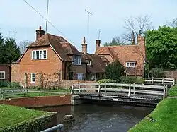 To the east of Bradfield the Pang is joined by the River Bourne and turns north to flow through the villages of Tidmarsh and Pangbourne, eventually entering the Thames between Whitchurch Lock and Whitchurch Bridge.[3]