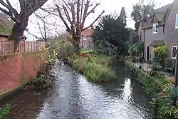 The River Pang is a small chalk stream river in the west of the English county of Berkshire, and a tributary of the River Thames. It runs for approximately 23 kilometres (14 mi) from its source near the village of Compton to its confluence with the Thames in the village of Pangbourne.