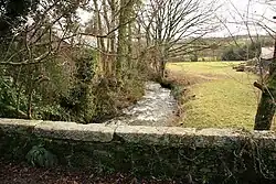 The river starts from marshland just to the south of Saddle Tor and the B3387 road on moorland, near Bag Tor Mire.[1][2]