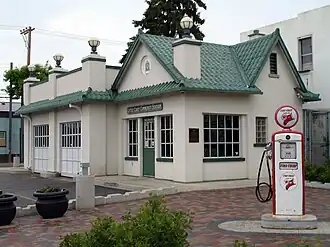 Little Chief Community Police Station, June 2007Little Chief Service Station (1929) – Built as a Texaco service station in the 1920s, this building was built in the Spanish Colonial style. It features white stucco walls, rounded roof tiles, decorative brick, heavy tiled cornices, roof parapets, iron windows and copper gutters. It was named the West Side Service Station until 1943, when the name was changed to the Little Chief Service Station. After it ceased to be a service station, the Saskatoon Police Service obtained and renovated the building for use as a community police station. It was designated a municipal heritage property on January 11, 1982.[28]