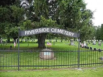 Riverside Cemetery is a historic cemetery located near Lowman, Chemung, Chemung County, New York. It was established in the 1790s, and contains graves dating from then to the present. It has a cast iron gate archway inscribed "Riverside Cemetery" and dated to about 1900. The cemetery includes the graves of many early settlers and Revolutionary War soldiers. Notable burials include Lieutenant Governor Seymour Lowman (1868–1940).[2]: 3
