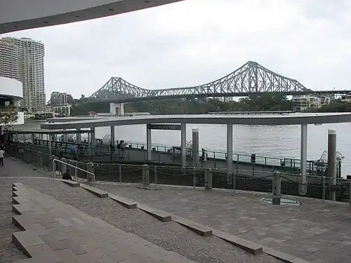 Riverside ferry wharf is located on the northern side of the Brisbane River serving the Brisbane central business district in Queensland, Australia. It is served by RiverCity Ferries' CityCat services.[1][2] From 15 November 2020 it is also being served by CityHopper and Cross River services.[3][4][5]