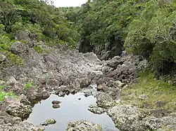 The Rivière des Marsouins is a river on the Indian Ocean island of Réunion, which is an overseas department and region of France. The river is 32.3 km (20.1 mi) long.[1] It flows northeast from the center of the island, reaching the sea close to the town of Saint-Benoit. The Rivière des Roches follows a largely parallel course, reaching the sea three kilometres to the north.