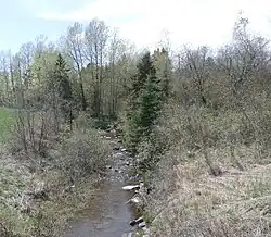 ![]() Rivière des Renards upstream of the rang 6 and 7 bridge in St-Ludger. | |