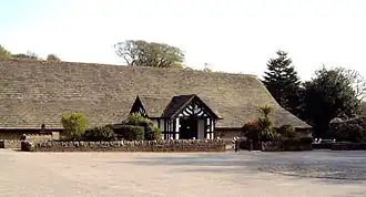 Rivington Hall Barn adjoins Rivington Hall in Rivington, Lancashire, near Chorley and Bolton. The Tithe barn foundation stones support a Medieval cruck construction and possibly date to the between the 9th and 15th centuries.[1] The structure was restored, altered and enlarged in 1905 by Jonathan Simpson for Lord Leverhulme. It is a Grade II Listed building.[2]