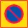 Prohibitory signs are round with yellow backgrounds and red borders, except the no parking and no standing signs that have a blue background instead of yellow.