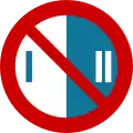 Warning signs mostly have a triangular shape. Their borders are red and their background is yellow, with pictograms being black. Prohibitory and mandatory signs are mostly round in shape. Prohibitory signs have red borders and a white background, with pictograms being black. For mandatory signs, their background is blue and pictograms are white.