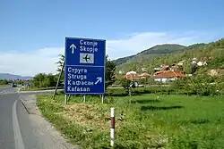 The former Yugoslavia had originally signed the Vienna Convention on Road Signs and Signals on November 8, 1968 and ratified it on June 6, 1977.[2] Yugoslavia formerly used a yellow background on warning signs. After the breakup of Yugoslavia when the Republic of Macedonia declared its independence in 1991, the country succeeded to the Vienna Convention on December 20, 1999 (initially under the name Former Yugoslav Republic of Macedonia,[3] but since 2019 under the name North Macedonia after the long-term dispute over the name of the Republic of Macedonia between Greece and the former Yugoslav Republic was resolved by renaming the latter one to North Macedonia).