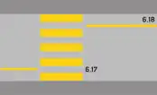 6.17 Pedestrian crossing (longitudinal, wide, yellow; on cobble stones if need be white) | |