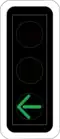 7.14 Green arrow with additional flashing yellow | Permits traffic to turn. Turning vehicles must give way both to oncoming traffic and to people crossing on side roads, who are usually permitted to cross the side at the same time. |