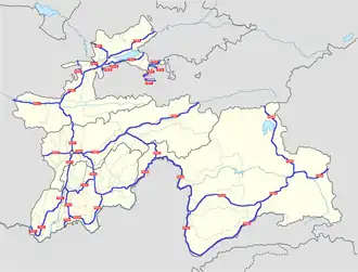 Several of the highway of the Asian Highway Network cross Tajikistan. These include the following: