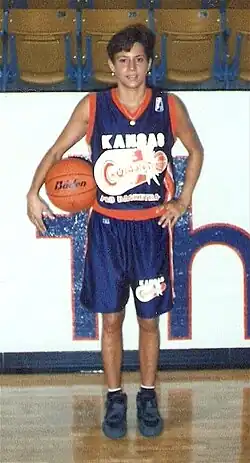 Garcia's collegiate career began with high scoring games of 46 and 40 points in her first year as a college player.[7][10] She was a Region NJCAA All-American and led the nation in scoring as a freshman, averaging 31.5 points per game before the implementation of the three-point line in the college game. Many of her points came from beyond what would have been the three-point arc.[11] She is the career all-time leading scorer at Dodge City College after scoring 1,298 points in just two years and has held this title for over 39 years.[12][13] "At Dodge City, Garcia earned All-America honors and was ranked as one of the top junior college swing guards in the country when she averaged 28 points and five rebounds per game as a sophomore in 1984–85. She ranked as the nation's fourth-leading scorer as a sophomore."[14] Garcia played at the University of Nebraska her junior year[15][16] and Friends University her senior year where she averaged 20 points per game and led her team and league in assists. She was a unanimous KCAC First-Team selection and NAIA Region All-Star her senior year.[17] Friends University Lady Falcons won the KCAC conference and made the NAIA National Tournament. Her Friends University Hall of Fame[18] Coach Jim Littell, former head coach at Oklahoma State University and current assistant at Wichita State University,[19] said "She's the greatest offensive talent I have ever coached. Passing, scoring, handling the ball".[7]