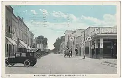 Robersonville, incorporated in 1872, is a town in Martin County, North Carolina, United States. The population was 1,269 at the 2020 census. Robersonville is located in North Carolina's Inner Banks region. Once an affluent eastern North Carolina community, it is noted for its abundance of historic mansions and estates, due (large in part) to families obtaining wealth from the tobacco industry and later manufacturing. It is currently home to the East Carolina Motor Speedway.