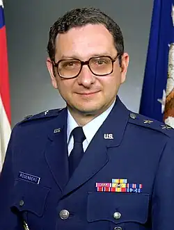 Major General Robert Alan "Rosie" Rosenberg[1] (born November 16, 1934)[2] of United States Air Force was Director of Defense Mapping Agency from July 1985 to September 1987. Throughout his 30-year career with the U.S. Air Force, he was instrumental to the U.S. satellite program. National Geospatial-Intelligence Agency inducted him into its Hall of Fame in 2005.