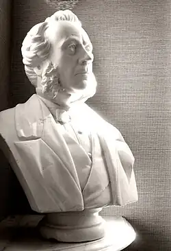 Ackrill was involved from the beginning, in Harrogate's push for a charter of incorporation. The town had expanded to the extent that it needed its own mayor and corporation. Ackrill contributed to meetings and, alongside many of the town's worthies, signed the formal memorial of 12 March 1883 sent to the improvement commissioners, saying that the townspeople wanted to begin the process of obtaining the charter.[18]: 345–347 It was Ackrill who, in 1884, as one of its former promoters and as Charter Mayor,[25] met the train which brought Harrogate's Charter of Incorporation from London, allowing the town to form its own borough council. After a celebratory procession from the station, with decorated streets and the ringing of church bells, he gave a public speech from a stand in front of the New Victoria Baths.[18]: 347, 633 Ackrill's bust (pictured, right) by Leeds sculptor Anthony Welsh is undated,[28] but it is possible that it commemorates his time as Charter Mayor. "[Ackrill's] name stands upon that document prominently, and on him devolved the duty of carrying out some of the earlier preliminary stages connected with the Municipal Incorporations Act".[17]