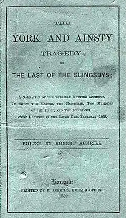 - Ackrill, Robert (1869). The York and Ainsty Tragedy, the last of the Slingsbys. Herald Office, Harrogate: Robert Ackrill.