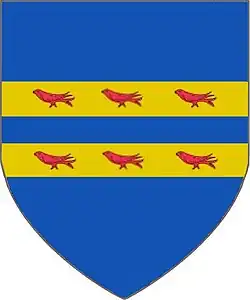 - ^ the martlets were a difference added to the original Burdet arms based on the fact that Robert's father, Hugh Burdet, was a third son, the difference for whom is a martlet.